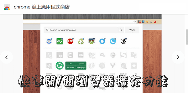 新增分組後並點擊擴充功能加入,方便一次啟用(停用)分組中的擴充功能。